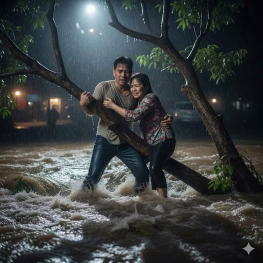Anh kịp đẩy hai đứa con vào mái hiên cao hơn, còn Mai bị nước cuốn trôi xa.