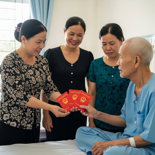 Ngày ông Minh tập hợp cả gia đình lại, không khí trong gian nhà cũ nặng trĩu. Ông ngồi trên chiếc ghế gỗ quen thuộc, ánh mắt yếu nhưng vẫn sáng, nhìn lần lượt từng người con dâu. Trước mặt ông, ba cuốn sổ tiết kiệm đã đặt sẵn.